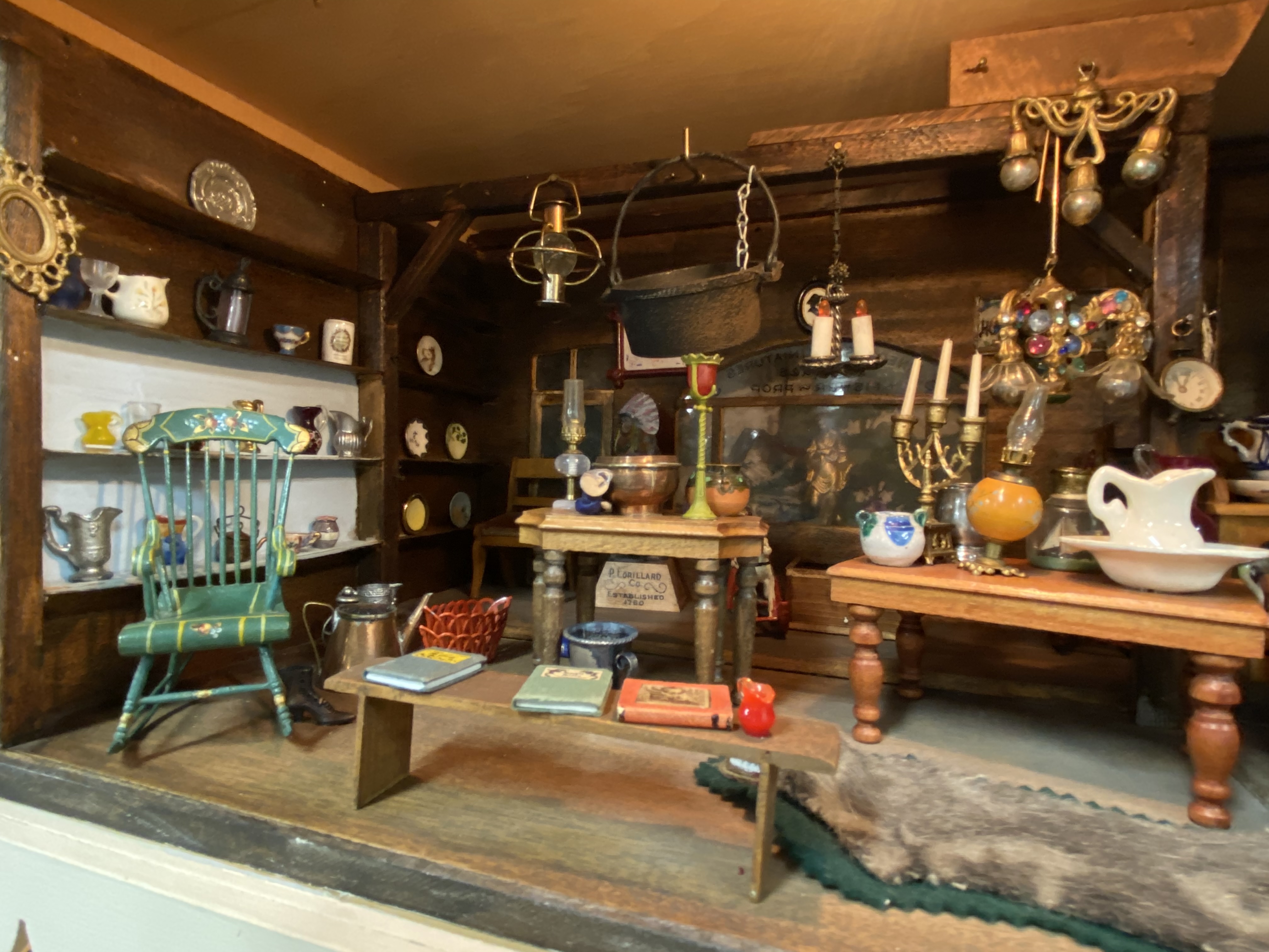 The photograph offers a left hand view of the antique shop in Mrs. Fisher's dollhouse.