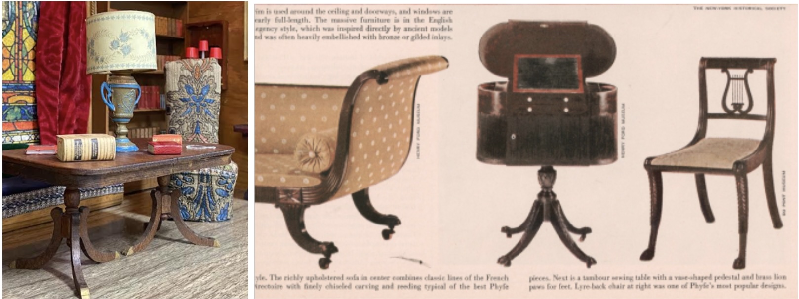 The following item depicts a comparison of the research and inspiration for the furniture in the Gothic library.