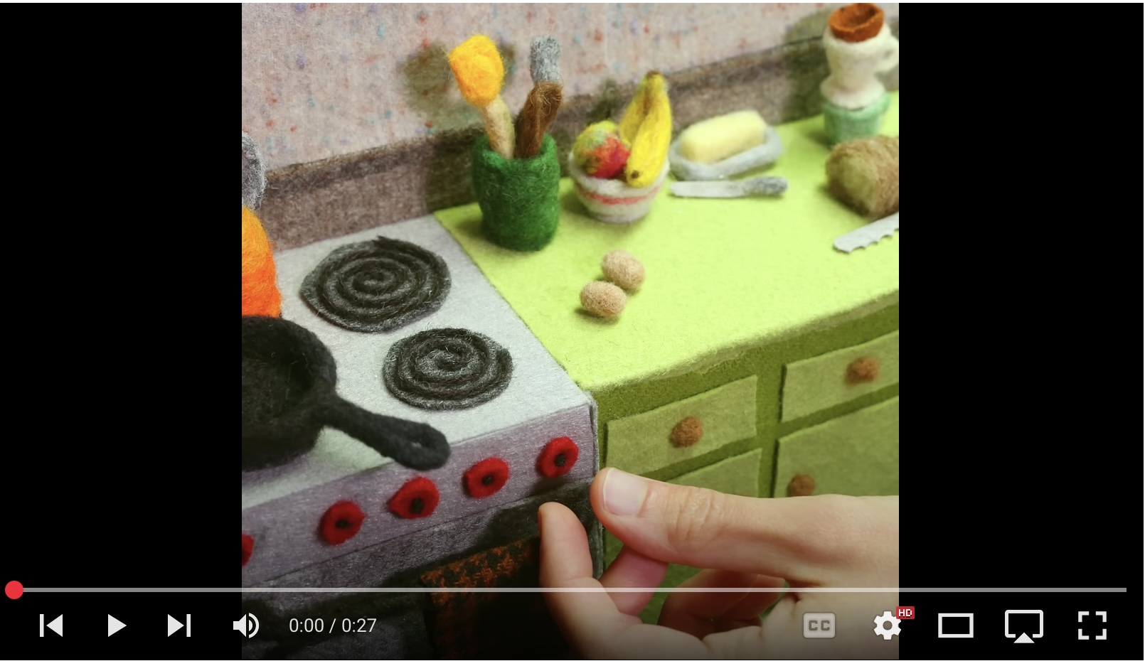 A Frame Still from a Youtube Video entitled, "Cooking with Felt, Breakfast," by Andrea Love, posted 2020.
